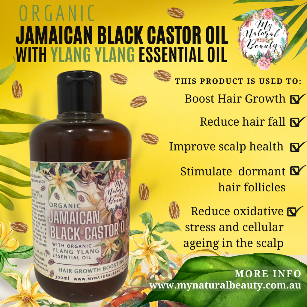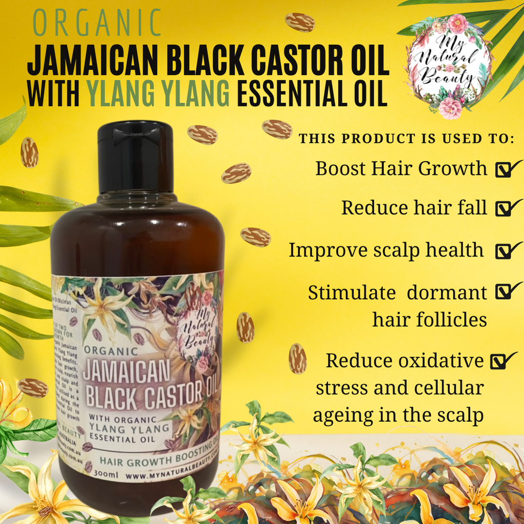 Ylang Ylang has been used for centuries due to its natural thickening effect on hair and also its healing properties on the skin. In the aromatic world, Ylang Ylang is also used as a sedative due to its calming and balancing properties. It has been known to help relieve extreme mood swings associated with PMS. So upon using this Jamaican Black Castor Oil with the addition of Ylang Ylang, you will also experience this euphoric effect on the nervous system, reducing anxiety and tension and thus also reducing any hair fall due to stress.