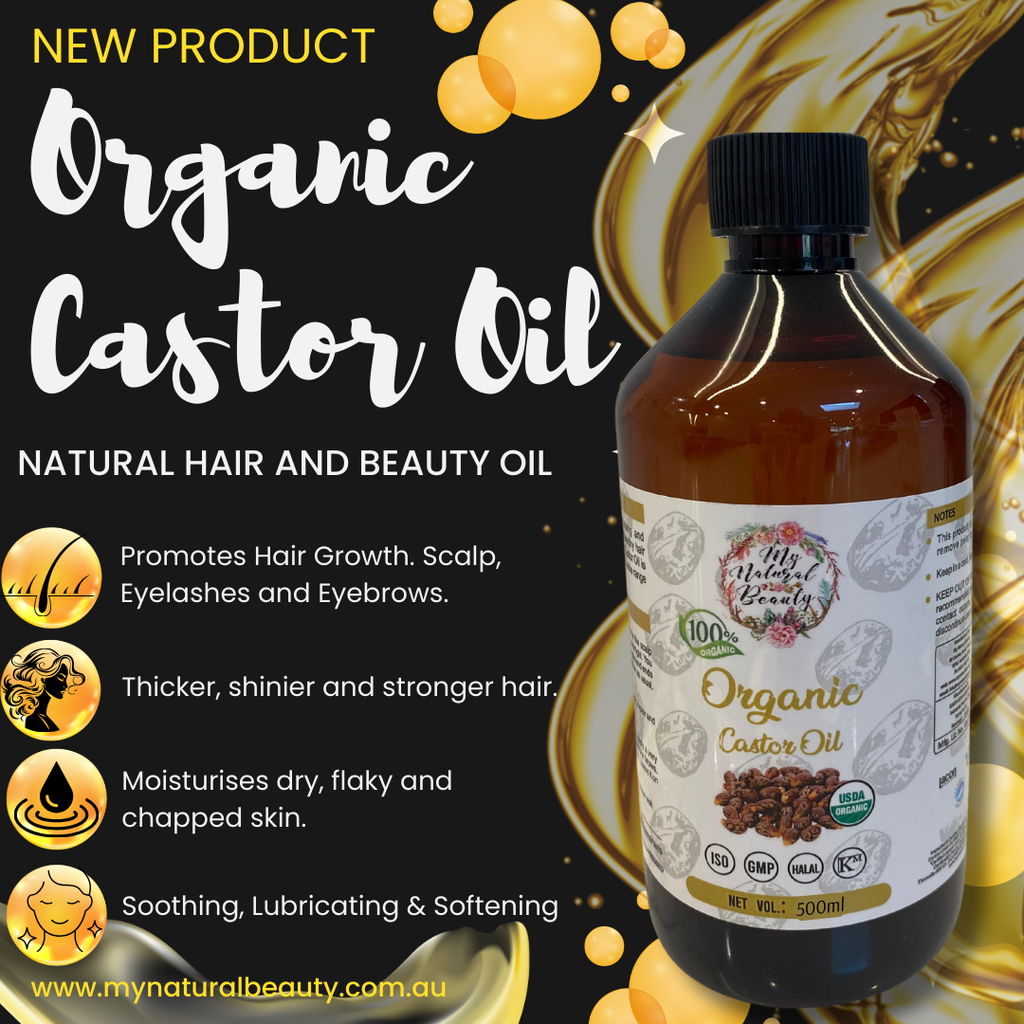 Organic Castor Oil- 200ml, 500ml or 2x 500ml-In Glass Bottles