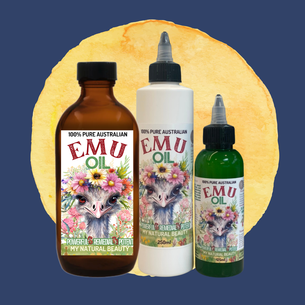Emu Oil is made from emu fat and is a natural treasure that is highly beneficial for skin and hair. Our high-quality Australian Emu Oil is packed with essential fatty acids that are great for skin, scalp and hair. Emu Oil is extremely low allergenic and is used for healing the skin. It can also be used to help many skin conditions such as Dermatitis, Eczema, and Psoriasis, burns, scarring, aches and pains, fine lines and wrinkles and inflammation.